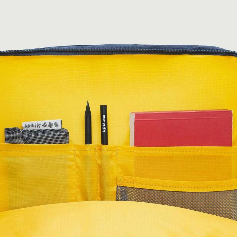 Mochila de Lefrik en colores grises con doble compartimiento interno con múltiples bolsillos. El compartimento principal viene con una funda acolchada para tablets y portátiles de hasta 15 pulgadas. El compartimento delantero viene con un organizador inteligente para accesorios pequeños.