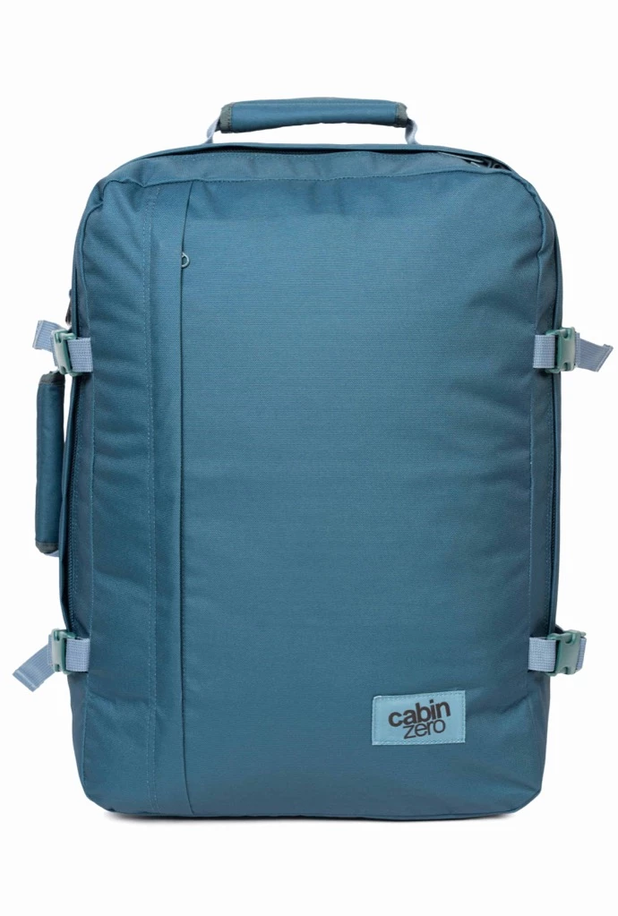 Mochila-bolsa de viaje de la marca Cabin Zero, robusta , ligera y funcional. Tiras para llevar a la espalda acolchadas . Tambien dispone de asa superior y asa lateral para poder llevarlo de mano. En el interior compartimento acolchado para poder llevar el portatil y bolsillos con cremallera. Recubrimiento resistente la agua. Perfecto para llevar como equipaje de cabina. Medidas 51 x 37 x 20 , con capacidad de 44 Ltrs. Color Azul.