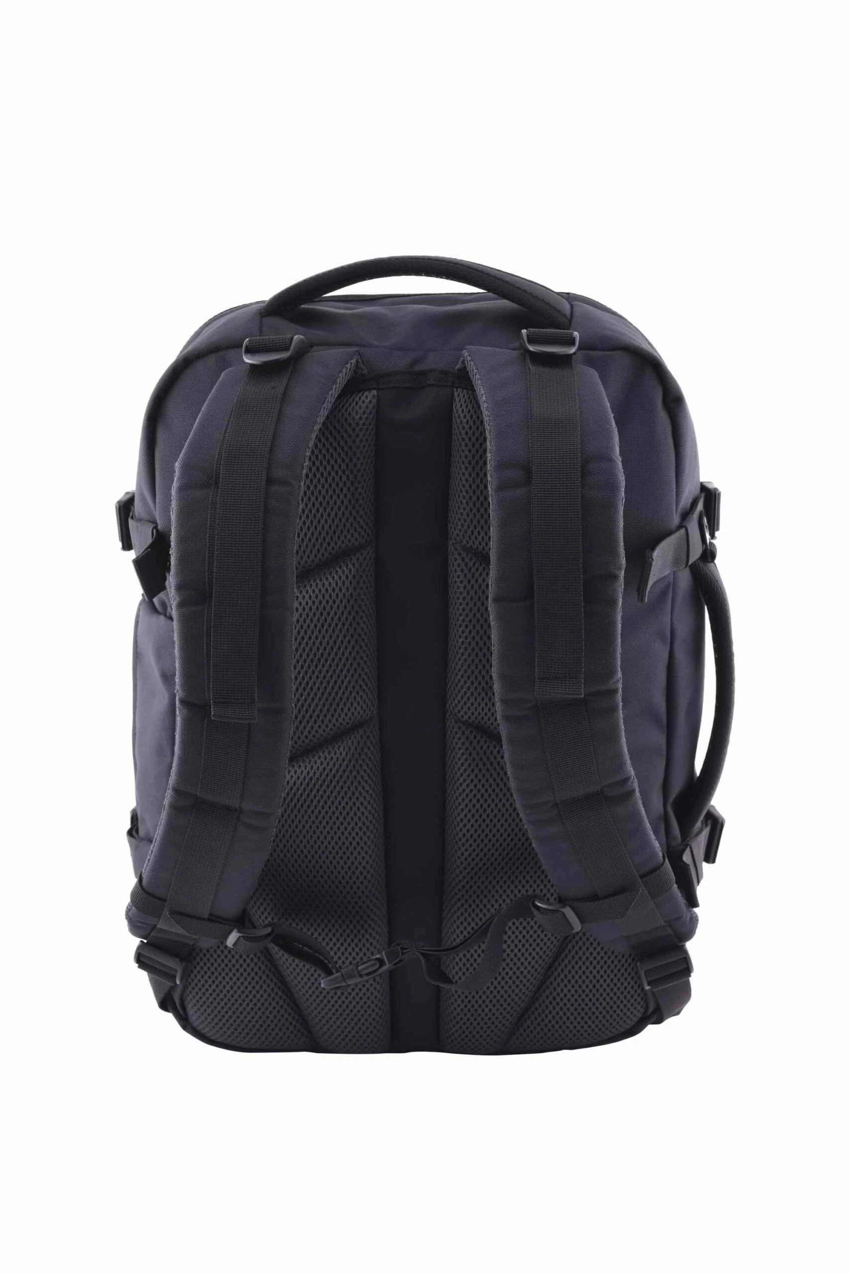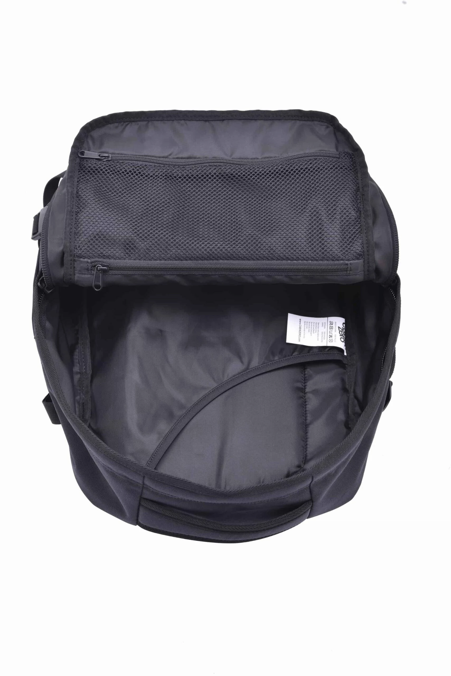 Mochila-bolsa de viaje de la marca Cabin Zero, robusta , ligera y funcional. Tiras para llevar a la espalda acolchadas . Tambien dispone de asa superior y asa lateral para poder llevarlo de mano. En el interior compartimento acolchado para poder llevar el portatil y bolsillos con cremallera. Recubrimiento resistente la agua. Perfecto para llevar en el avion debajo del asiento. Medidas 39 x 29,5 x 20 , con capacidad de 28 Ltrs. Color Negro.