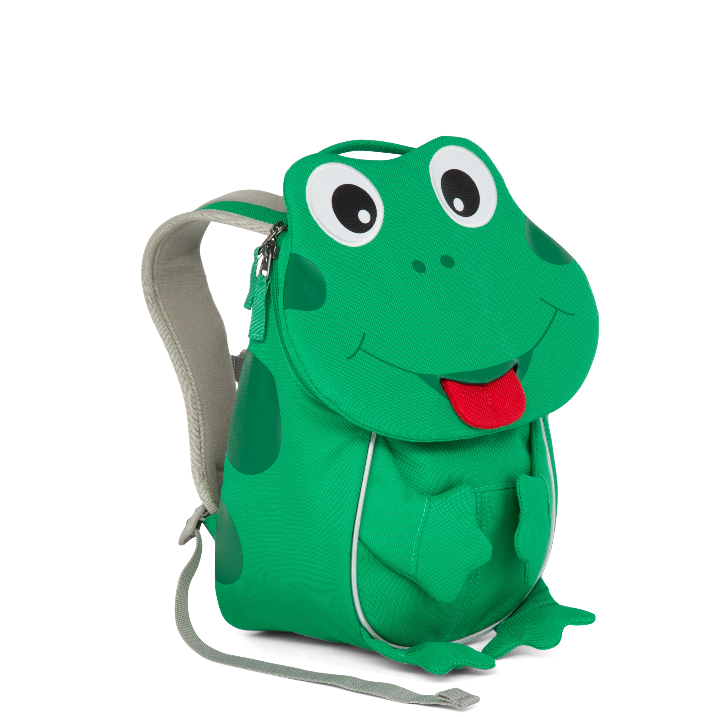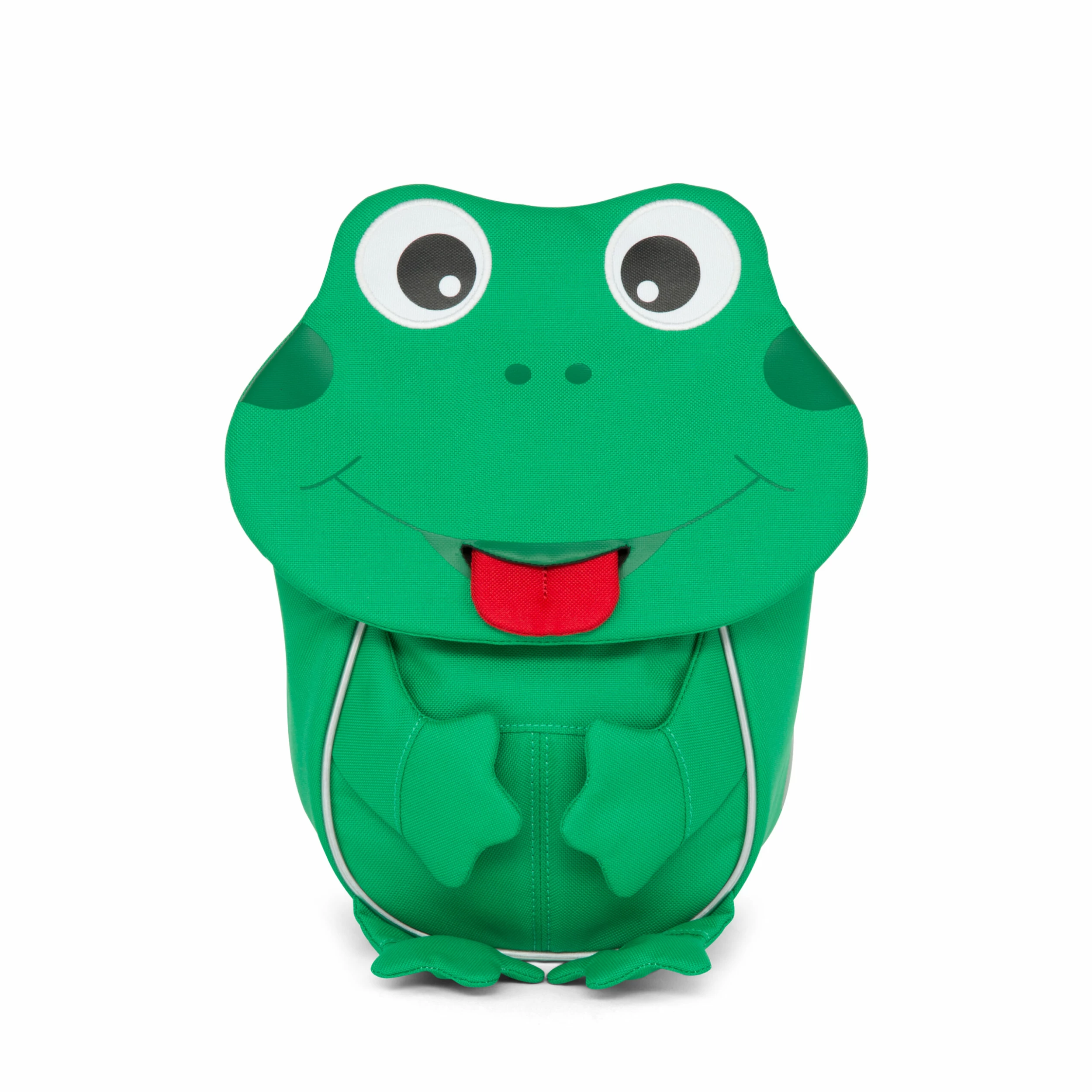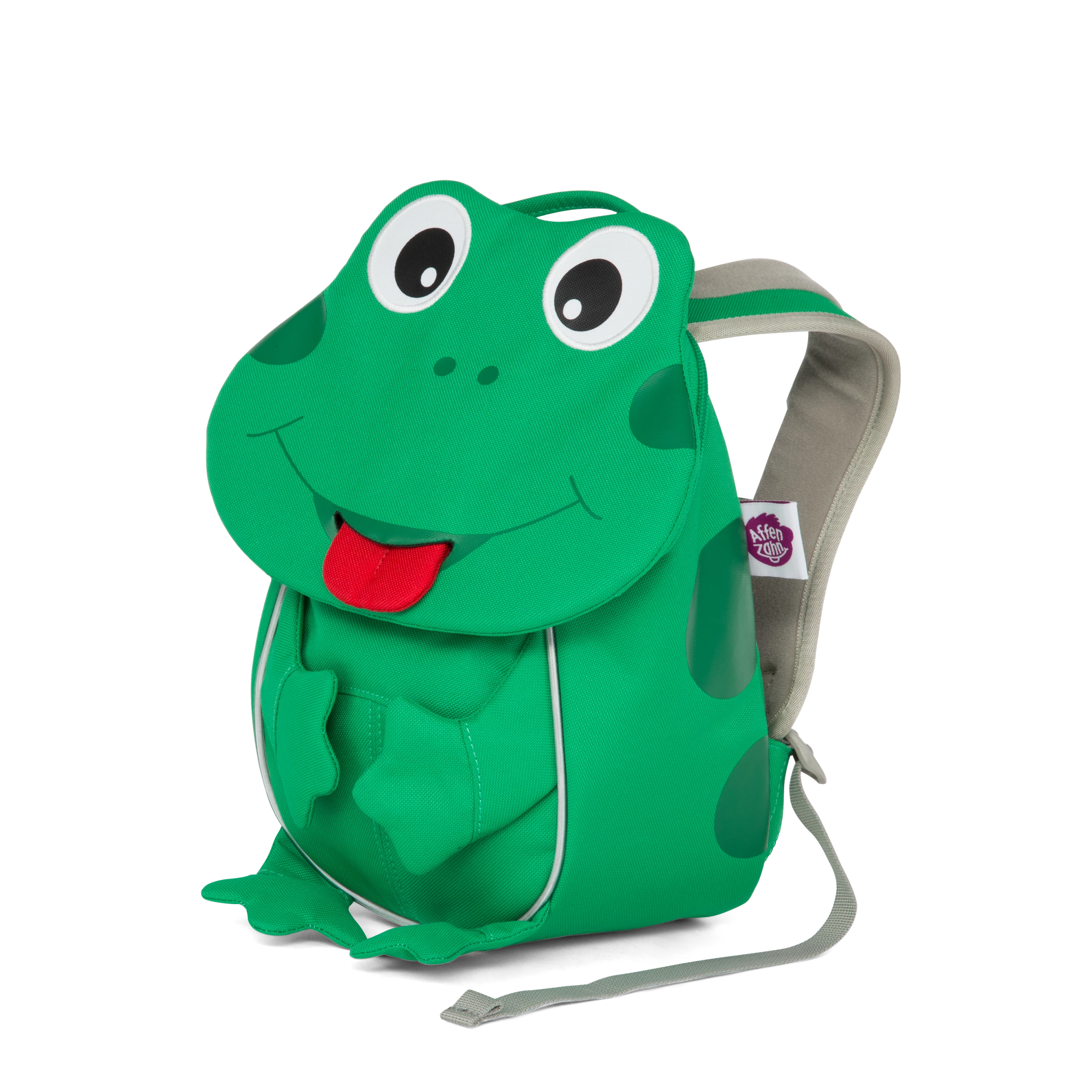 Mochila infantil de la marca Affenzahn con diseño de Rana La mochila es ergonómica, con asas ajustables y suaves, además tienen reflectores, unos bolsillos escondidos y con clips de fácil apertura. Aconsejada para 1-3 años de edad.
