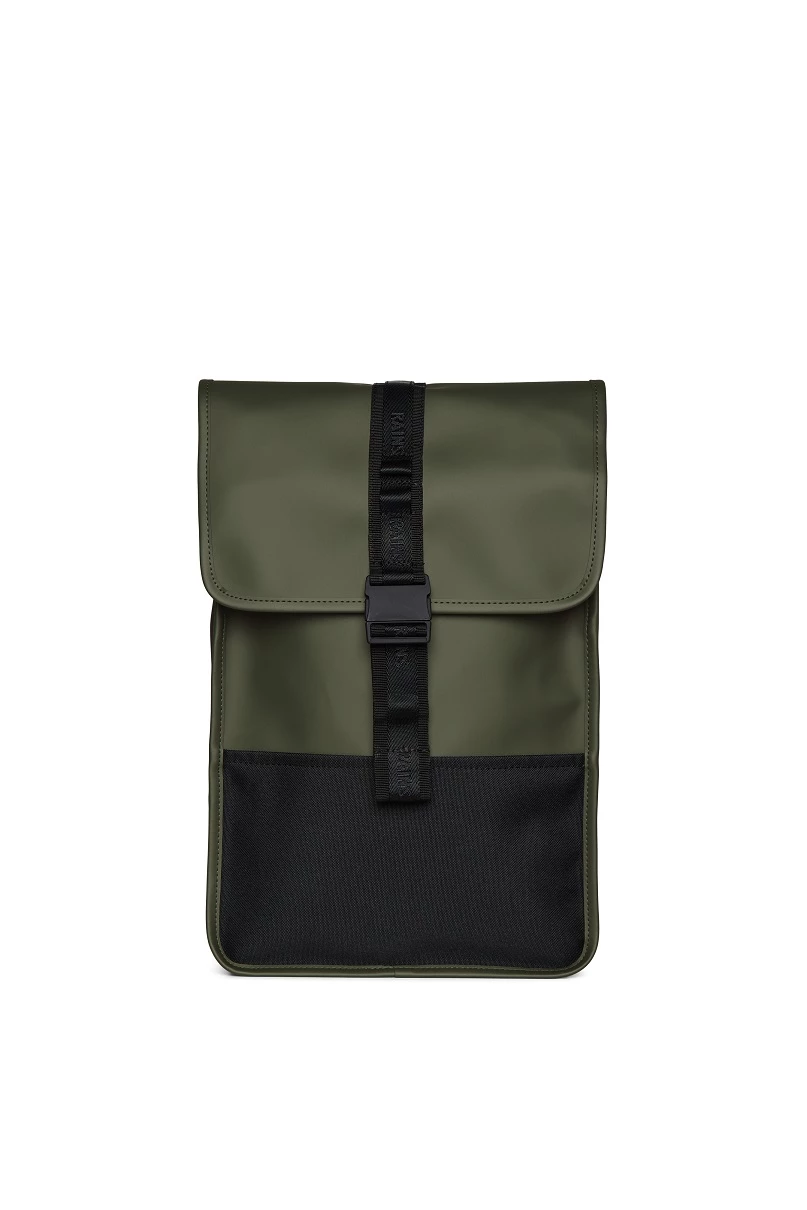 La mochila de la marca Rains Trail Mini verde es unisex, que ofrece muchas características muy útiles. La mochila Trail Mini está confeccionada con el tejido de poliuretano impermeable exclusivo de Rains y está diseñada para brindar resistencia, durabilidad y una sensación de suavidad. La mochila es en color verde